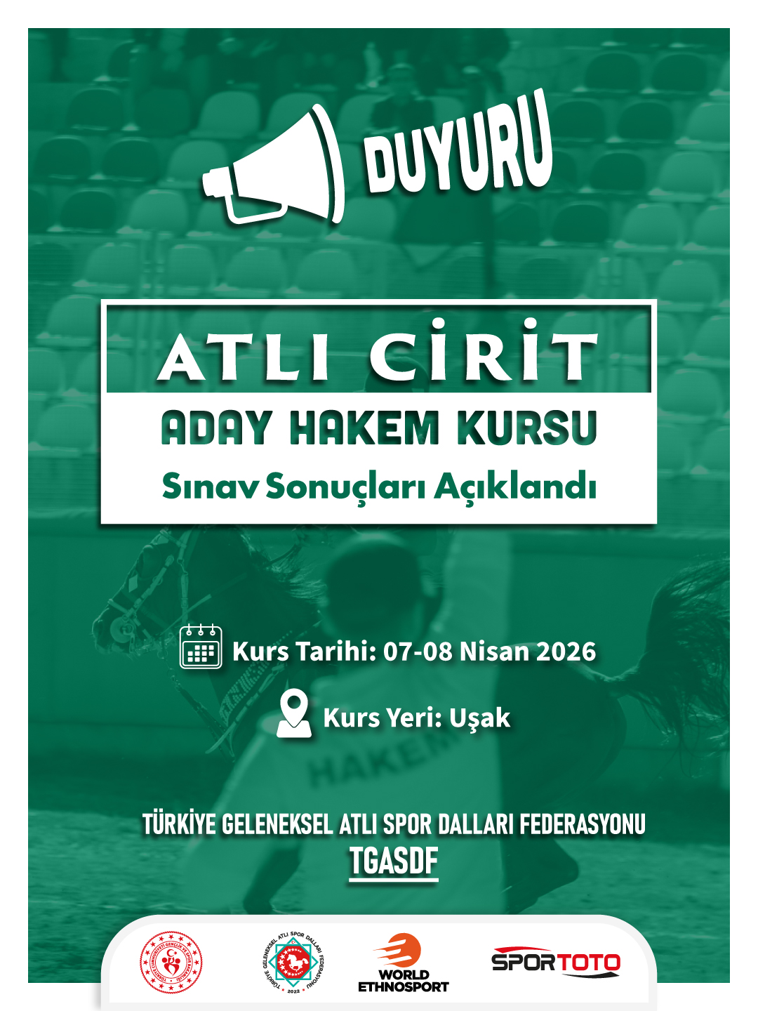 Atlı Cirit Aday Hakem Kursu Sınav Sonuçları Açıklanmıştır.