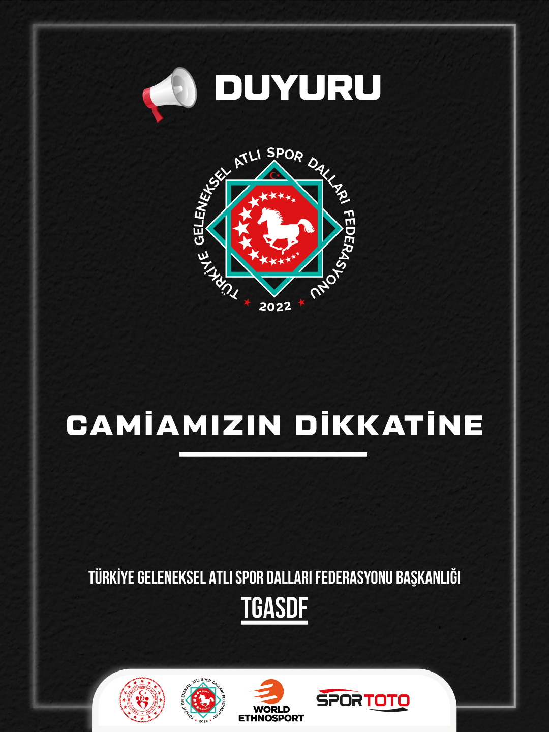 Türkiye Geleneksel Atlı Spor Dalları Federasyonu olarak, başta hakemlerimiz olmak üzere tüm sporcularımızın ve görevli personelimizin güvenliğini en yüksek öncelik olarak görmekteyiz. Geleneksel sporlarımızın itibarını zedeleyen hiçbir eyleme müsamaha gösterilmeyecek; sorumlular hakkında gerekli tüm idari ve hukuki işlemler titizlikle yürütülecektir.